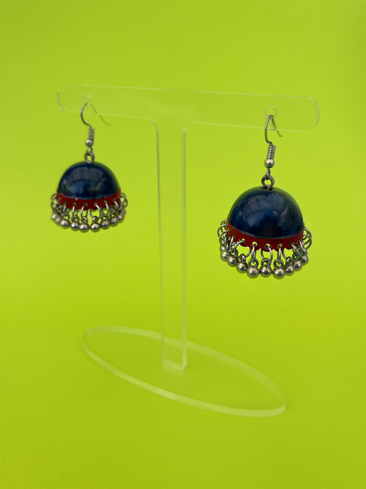 Navy Blue and Red Painted Silver-Plated Jhoomka