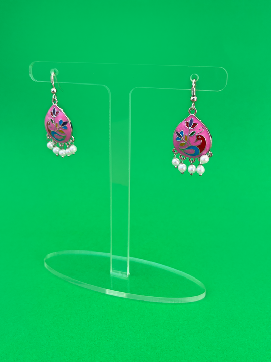 Pink and Green Hand-Painted Jhoomka with Assorted Beads