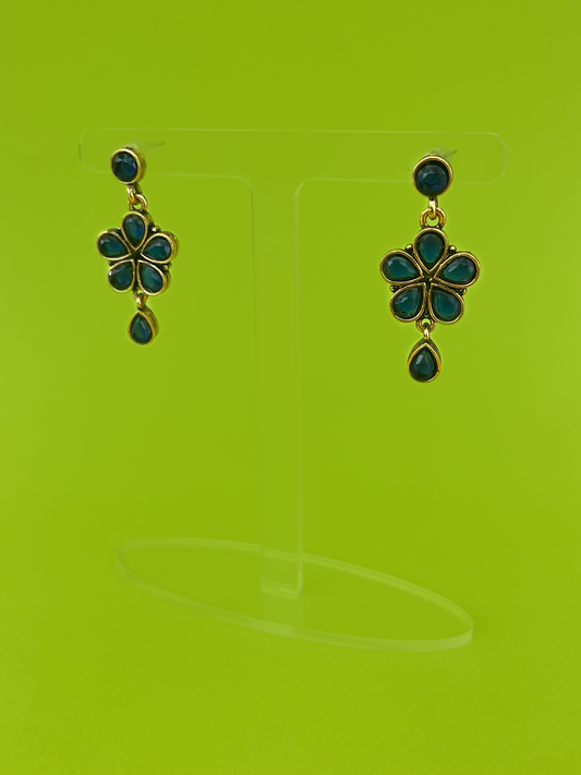 Flower-Shaped Gold-Plated Earring with Blue Stones