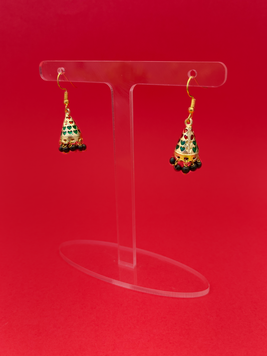 Green and Red-Heart Cone-Shaped Gold-Plated Mini Jhoomka with Hook
