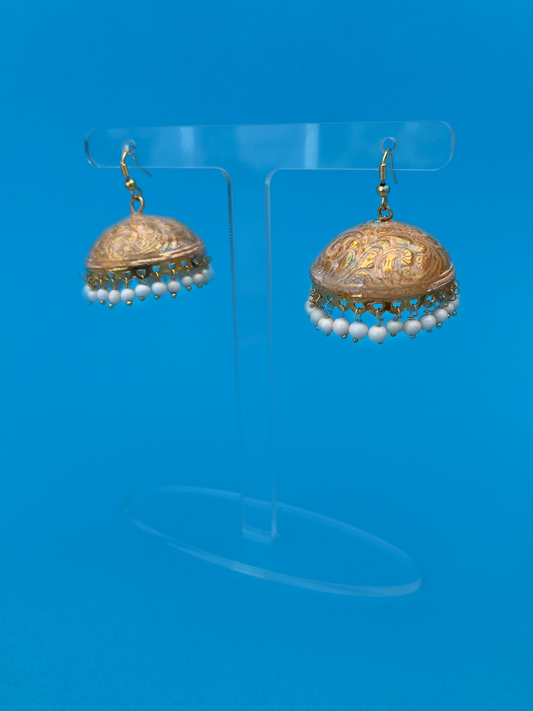 Gold-Plated Meenakari Jhoomka with White Beads and Hook