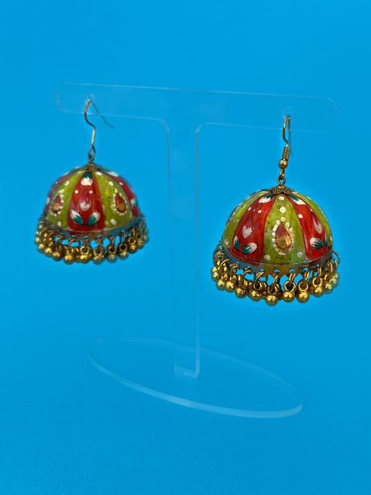 Lime Green and Orange Hand-Painted Gold-Plated Jhoomka