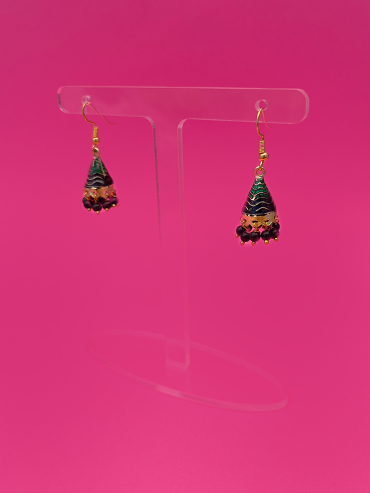 Black and Green Cone-Shaped Gold-Plated Mini Jhoomka with Hook