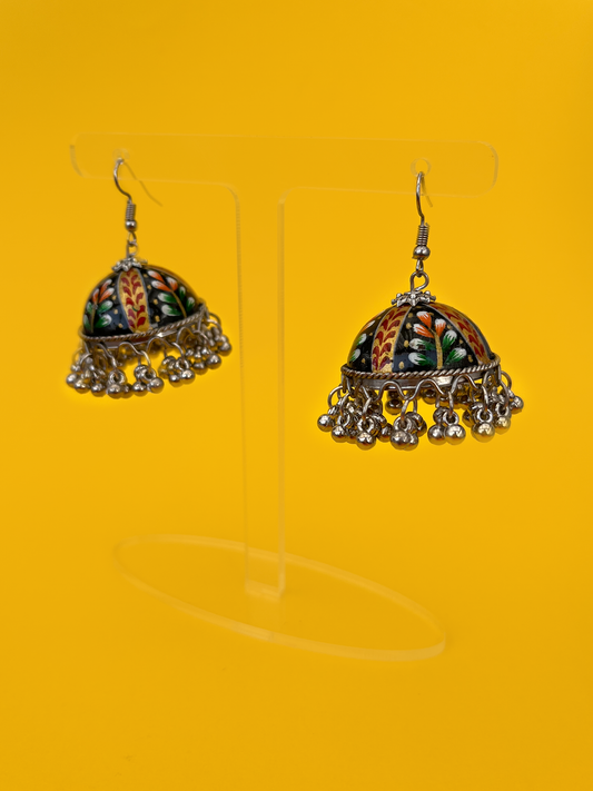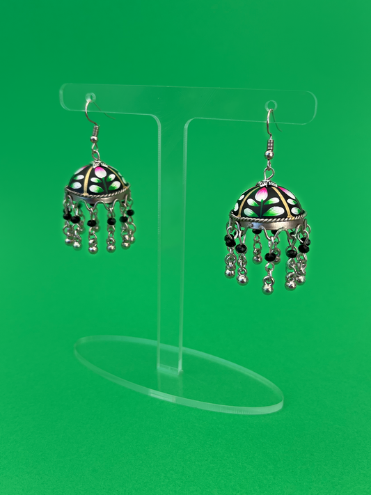 Black Hand-Painted Jhoomka with Black and Silver Beads