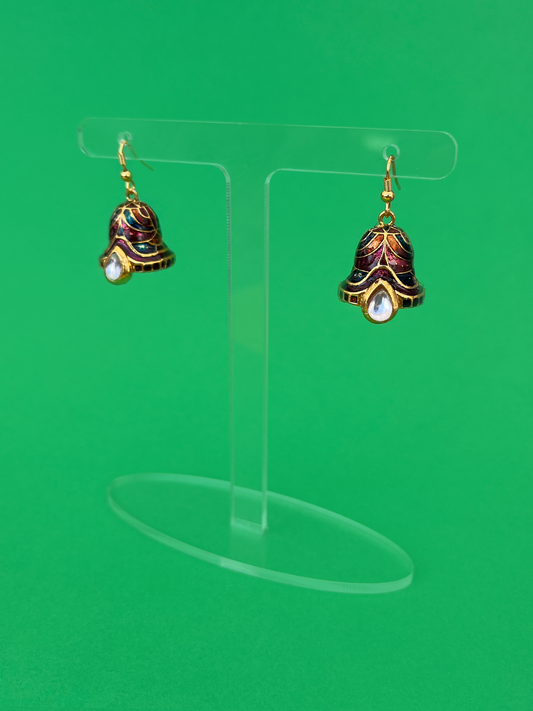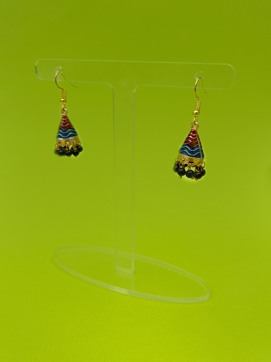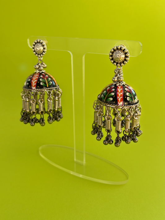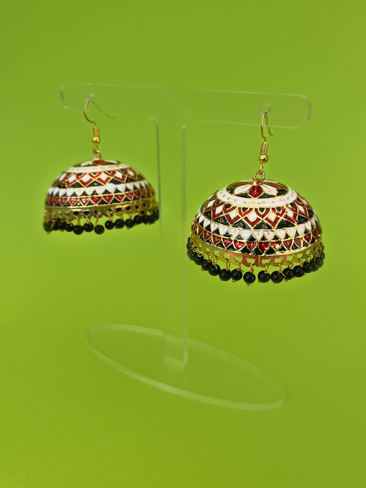 Black, Red and White Hand-Painted Meenakari Jhoomka