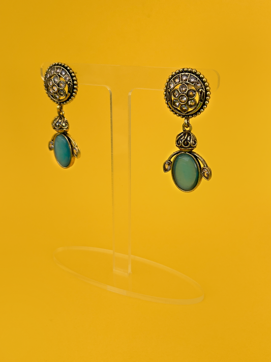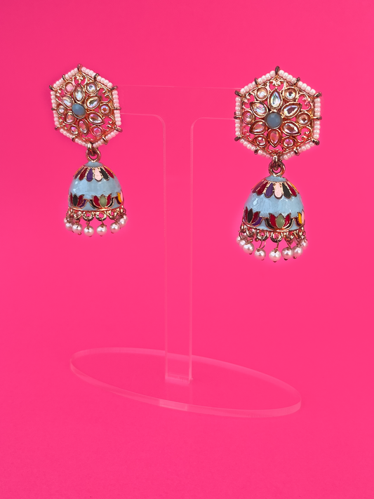 Baby Blue Hand-Painted Gold-Plated Kundan Jhoomka