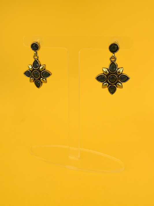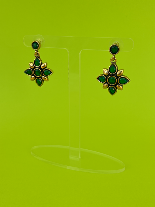 Flower-Shaped Gold-Plated Earring with Green Stones