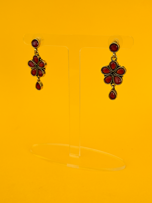 Flower-Shaped Gold-Plated Earring with Cerise Stones