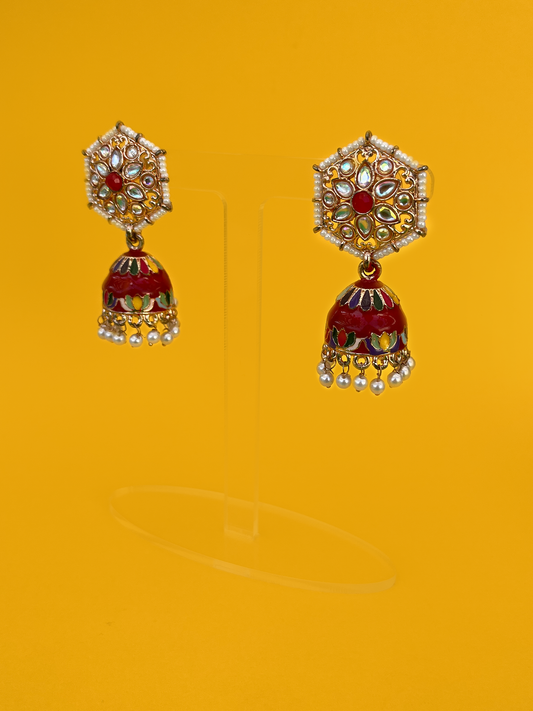 Red Hand-Painted Gold-Plated Meenakari Jhoomka
