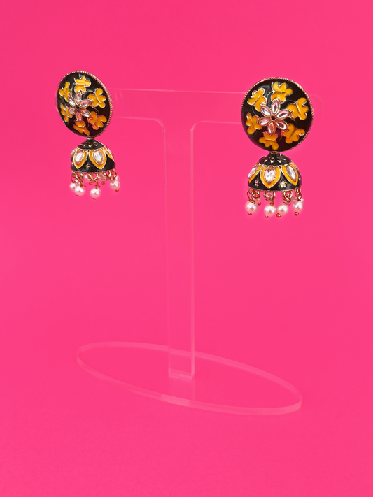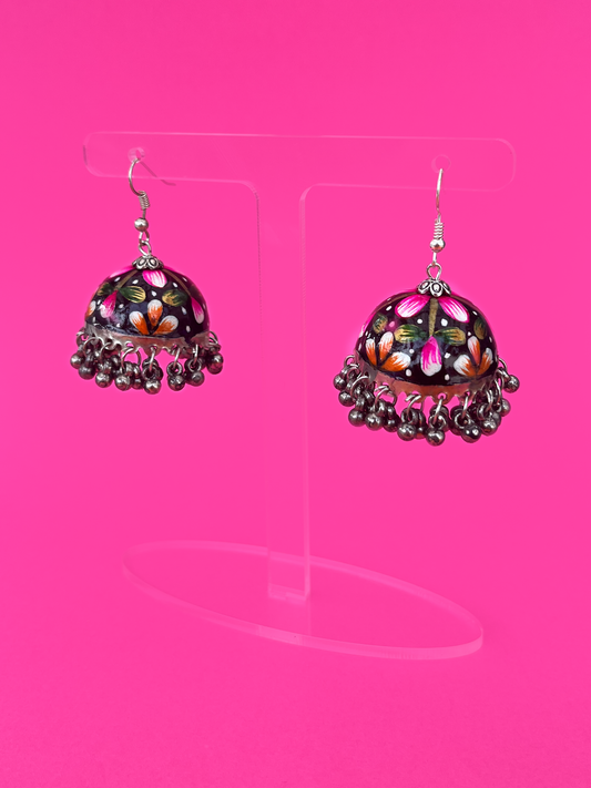 Black Hand-Painted Silver-Plated Meenakari Jhoomka