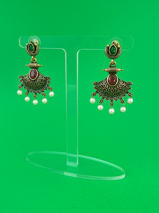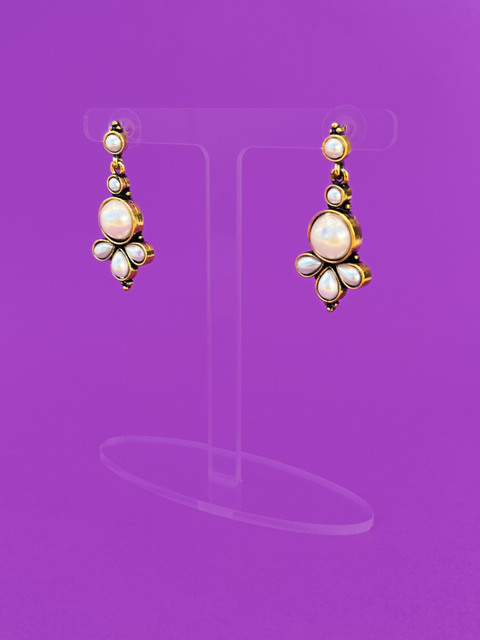 Antique-Style Gold-Plated Earring with Artificial Pearls