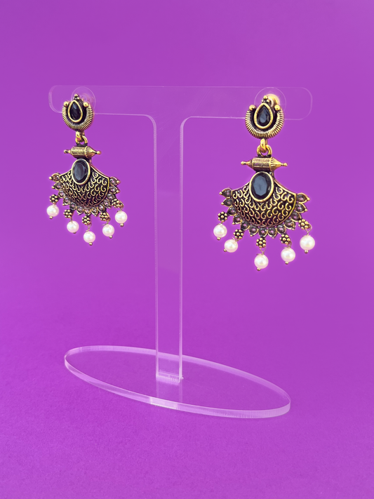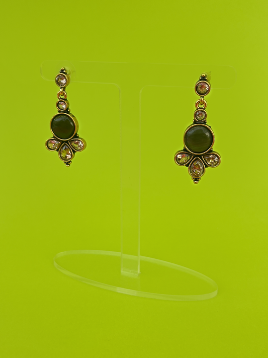 Gold-Plated Dangling Earring with Black-Coloured Stones