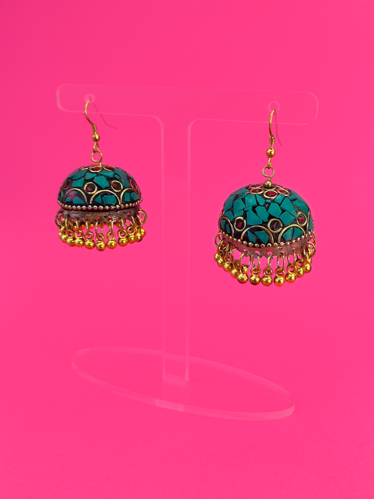 Turquoise Stone Gold-Plated Meenakari Jhoomka