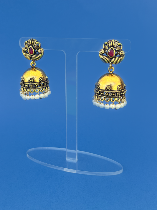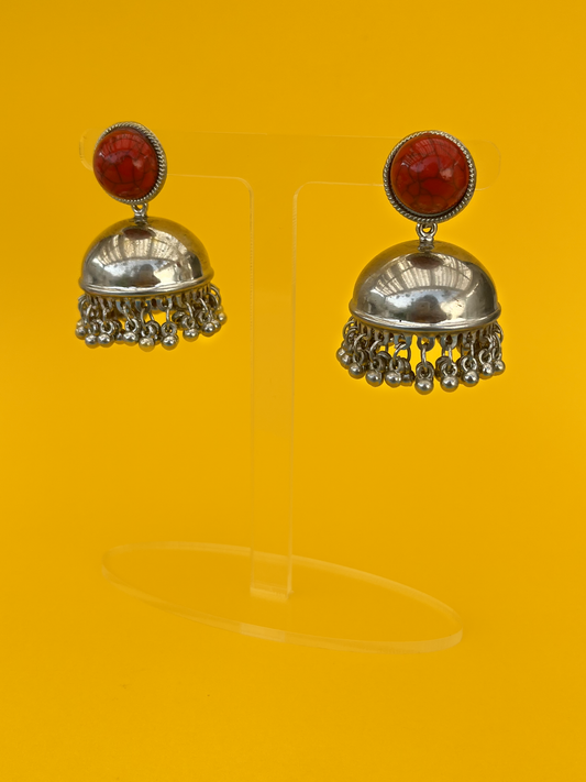 Dome-Style Silver-Plated Jhoomka with Red Stone
