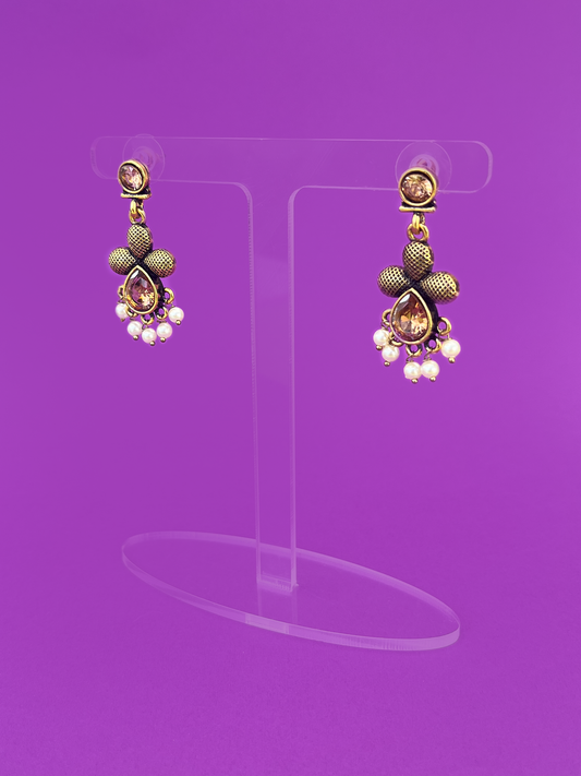 Antique-Style Gold-Plated Earring with Peach-Coloured Stones
