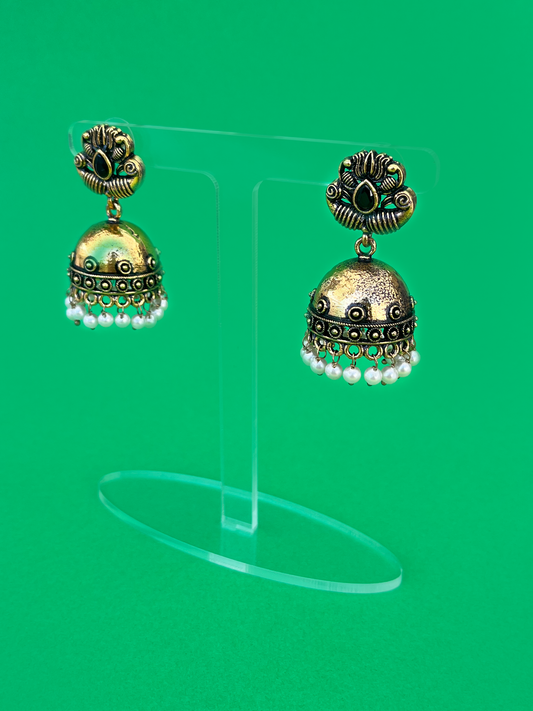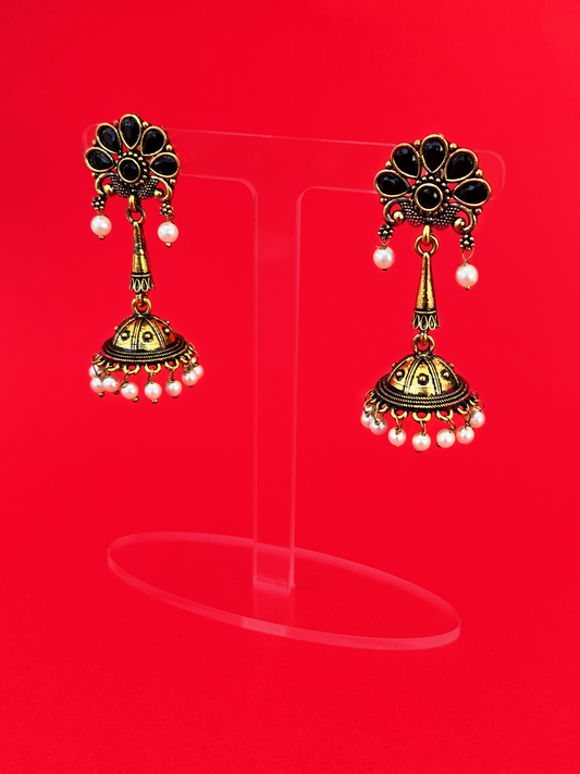 Floral-Style Gold-Plated Jhoomka with Black Stones