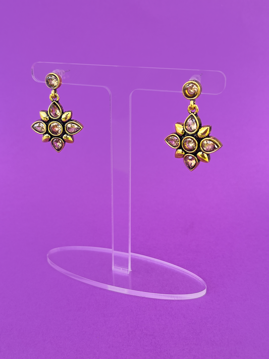 Flower-Shaped Gold-Plated Earring with Peach-Coloured Stones